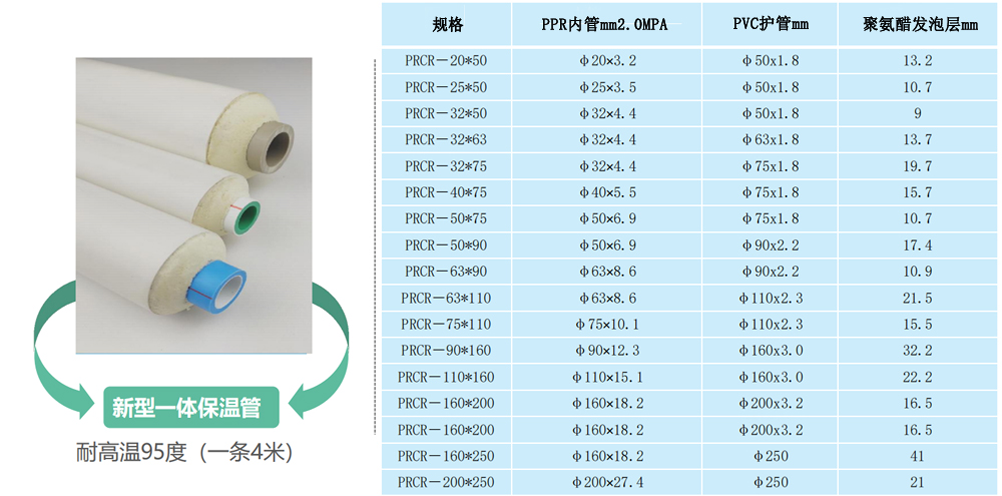 新型PPR保溫管采用聯(lián)塑PPR熱水內(nèi)芯管+聚氨酯發(fā)泡保溫層+PVC(PE)外套保護(hù)層,三層緊密閉合,中間無(wú)縫隙、無(wú)空氣層,保溫效果極優(yōu)。